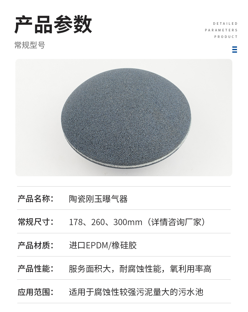 陶瓷剛玉曝氣器是以棕剛玉沙為主要原料,經(jīng)壓制成型、高溫?zé)Y(jié)的一種鐘罩型高效節(jié)能空氣擴(kuò)散裝置,該類型曝氣器硬度更大,化學(xué)性能十分穩(wěn)定,可適用于各種生活污水和工業(yè)廢水生化處理、水產(chǎn)養(yǎng)殖等增氧系統(tǒng)。分全剛玉和半剛玉兩個(gè)類型。它與其它類型曝氣器相比,運(yùn)行穩(wěn)定、耐老化、防腐蝕、適用于連續(xù)曝氣池運(yùn)行等特點(diǎn)給該產(chǎn)品營造了較為理想的市場空間。