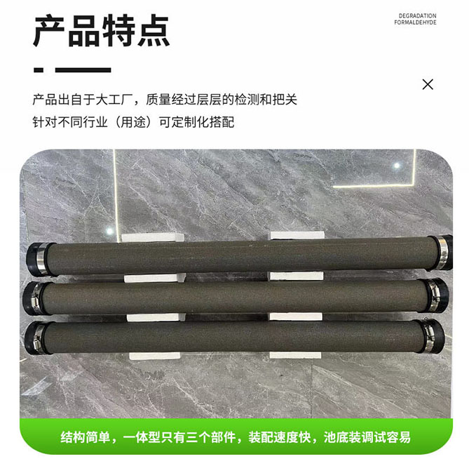 剛玉曝氣管是具有高效、低耗、運行可靠、充氣量大、攪動性強、阻力小,耐老化、防腐蝕、壽命長等特點。